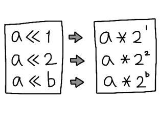 왼쪽 비트시프트(<<)가 될 때에는 오른쪽에 0이 주어진 개수만큼 추가되고,