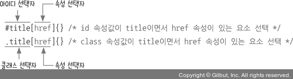 HTML 태그에서 사용할 수 있는 속성과 값을 사용해 선택자를 지정하는 방법