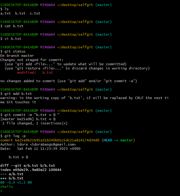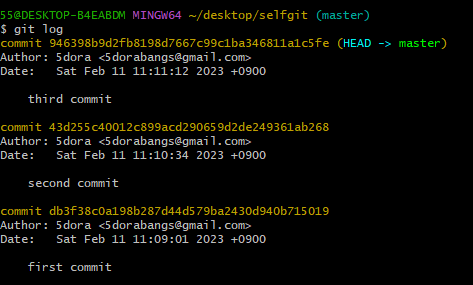 55@DESKTOP-B4EABDM MINGW64 ~/desktop/selfgit (master)