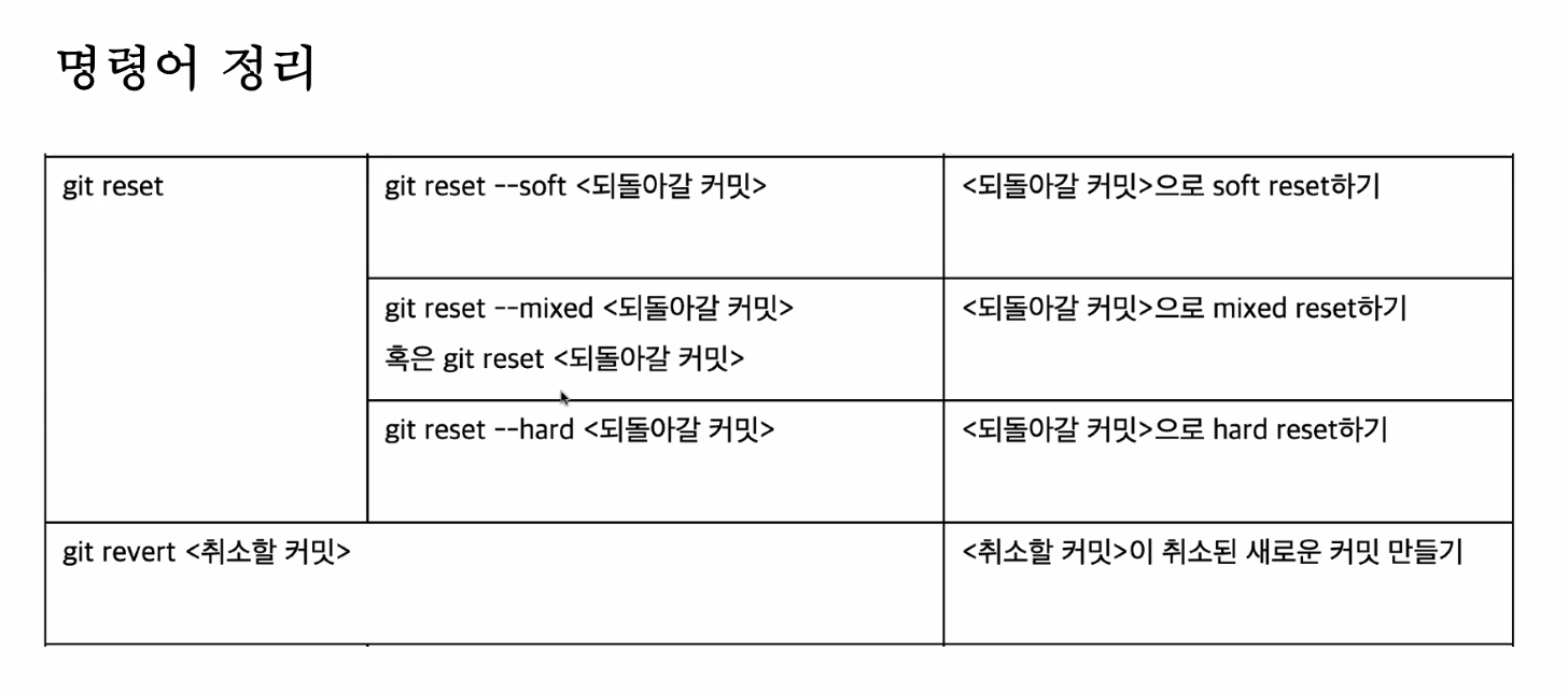① soft reset: 저장소로 커밋했다는 사실만 리셋