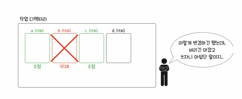 • 작업 디렉터리: 버전 관리의 대상이 위치하는 공간(.git이 있는 디렉터리)