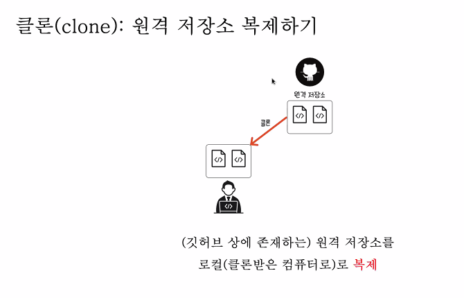 깃허브 상에 존재하는 원격 저장소를 로컬(클론받은 컴퓨터)로 복제