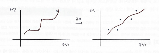 : 머신러닝 모델이 훈련 세트를 너무 과도하게 학습하지 못하도록 훼방하는 것
